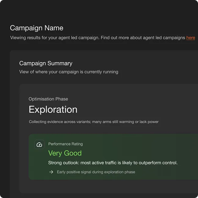 Traditional optimisation picks one winning experience and switches it live for everyone. Agentic Campaigns are different. They find the best experience for every visitor context, like 1,000 personalised tests running simultaneously.