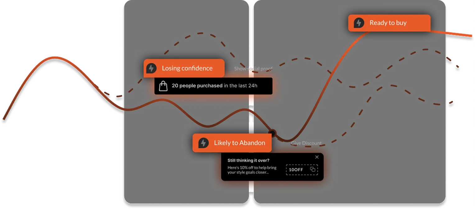 Timing adapts per context. For experiences like popups, overlays or email capture, the agent doesn't just decide who sees it. It finds the optimal moment to deliver it. That timing varies by device, channel, and landing page.