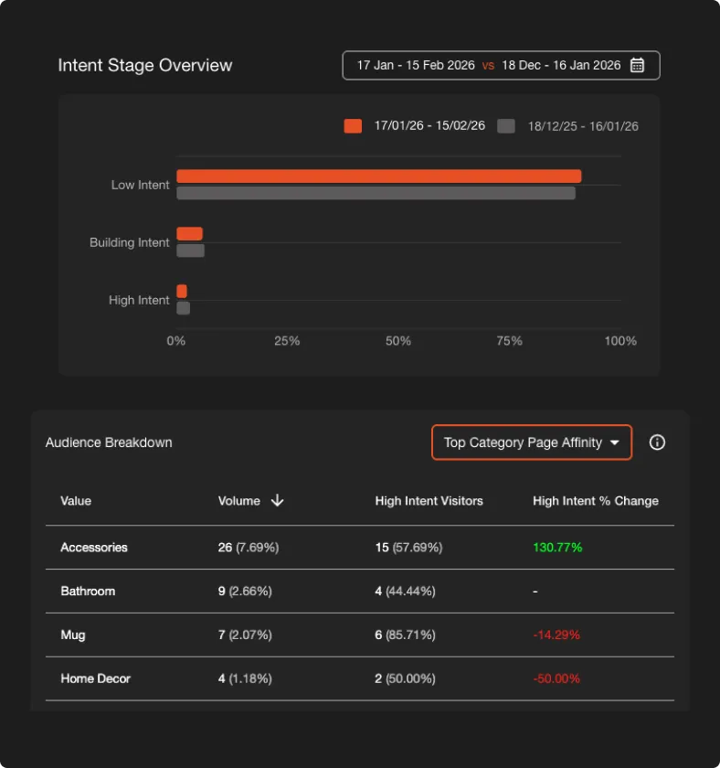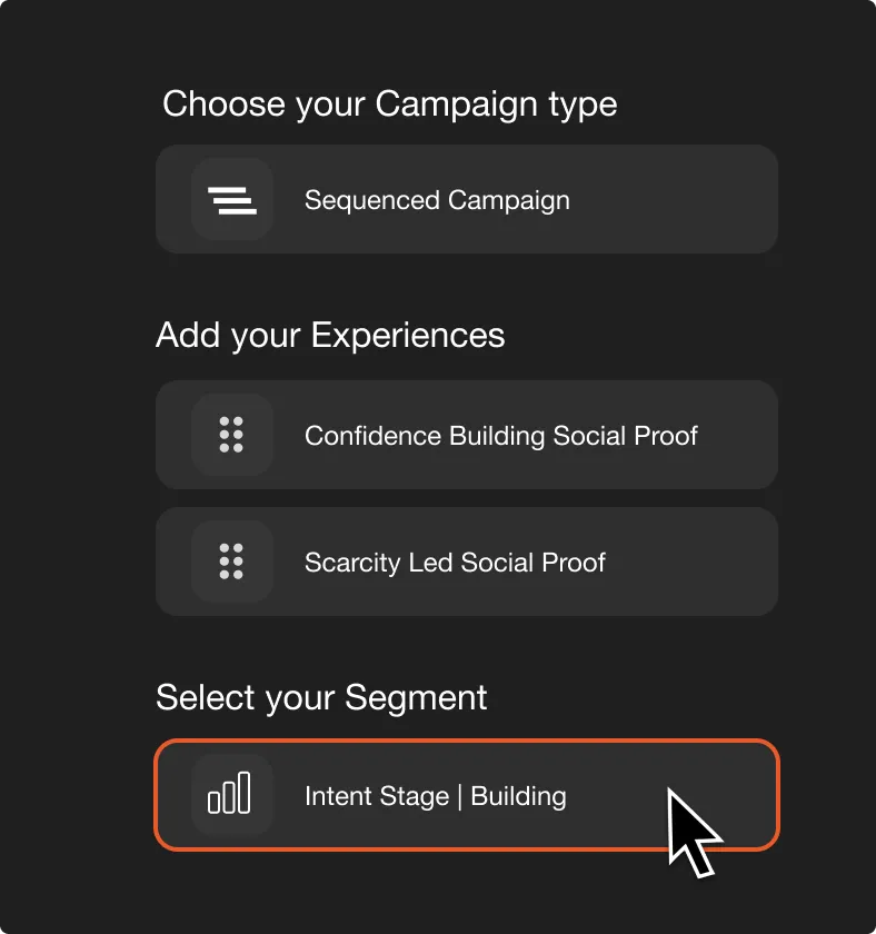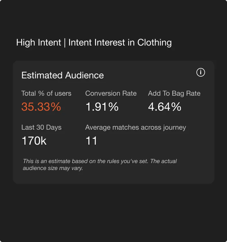 Build intent segments with our simple builder to target visitors in the moments that matter.
