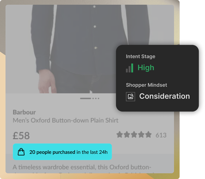 Reduce basket abandonment by 65% by helping visitors overcome hesitation with intent-based experiences.