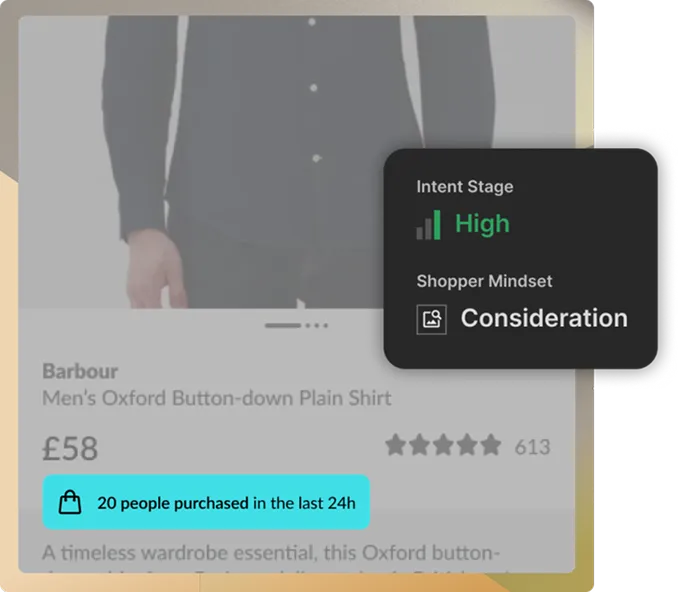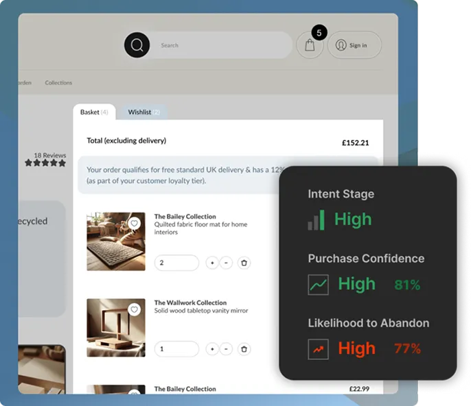 Reduce basket abandonment by 65% by helping visitors overcome hesitation with intent-based experiences.