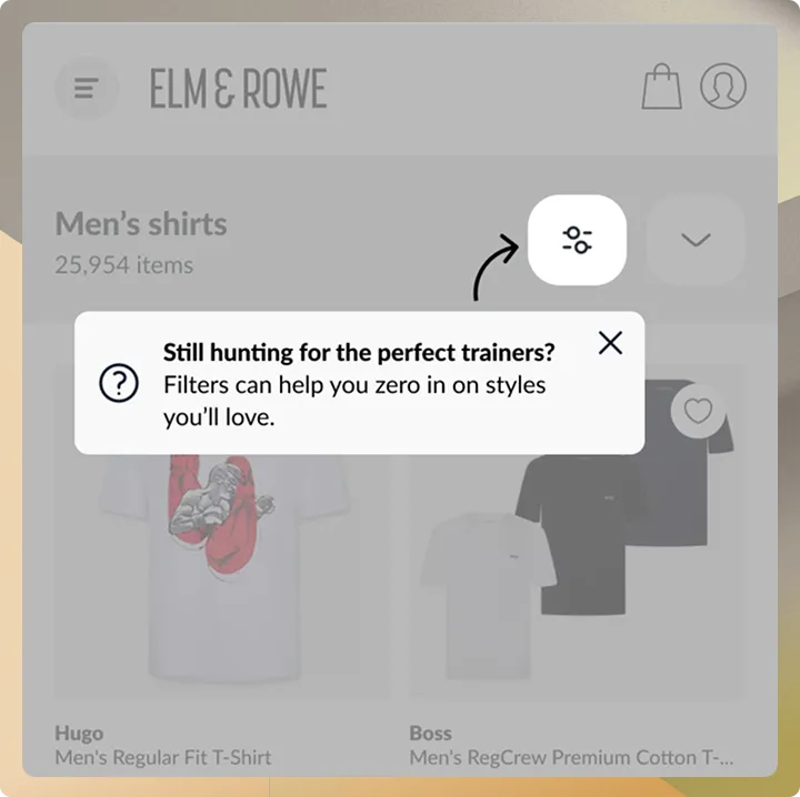 Surface in-session nudges to guide visitors, highlight features and prompt action, right when they need it most. Increasing engagement by 30%.
